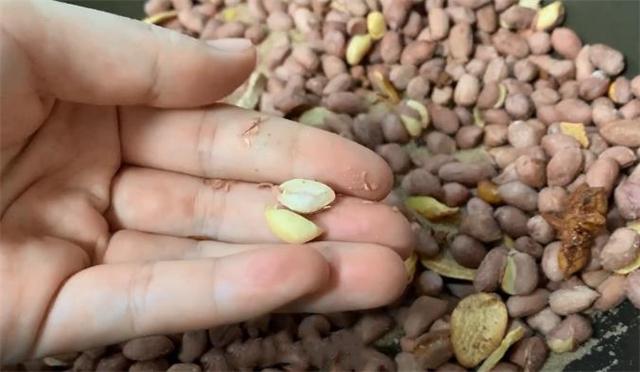6.這個時候需要改成小火繼續(xù)翻炒,這個過程大概需要7-8分鐘,炒至花生米用手輕輕一捏,外皮能輕松散掉就證明已經(jīng)好了,這個時候就可以關(guān)火了。