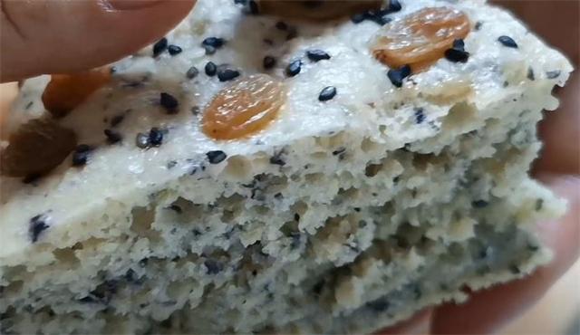 準(zhǔn)備食材: 黑豆、清水、低筋面粉、白糖、酵母粉、泡打粉、溫水、食用油、熟芝麻、葡萄干 具體做法:
