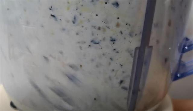 2.再把它撈出來放入破壁機(jī)里,加入100毫升清水,選擇果汁鍵打成黑豆汁。