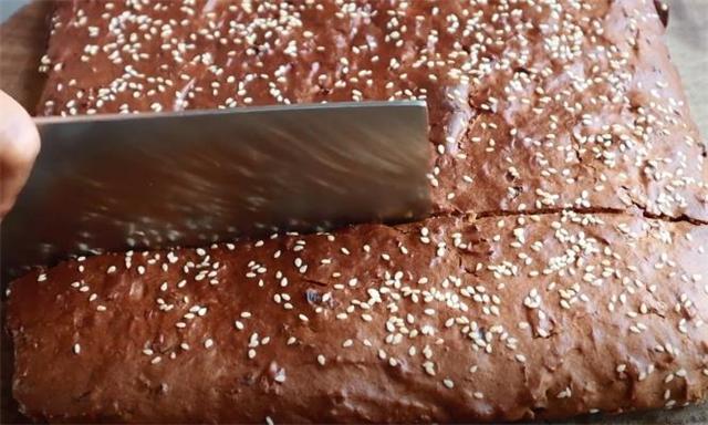6.時間到,咱們這個棗糕就烤好了,一股濃郁的棗香味撲面而來,切開給大家看一下。