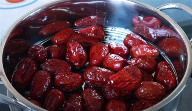 1.我這里準備了200g新疆大棗,先把這些棗上面的塵土沖洗干凈,紅棗洗干凈后直接倒進蒸屜里面上鍋蒸,蓋上鍋蓋蒸40分鐘,紅棗在蒸的過程中可以聞到一股濃郁的棗香味。