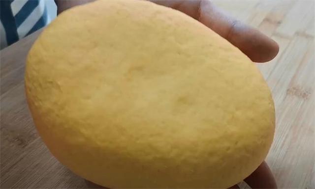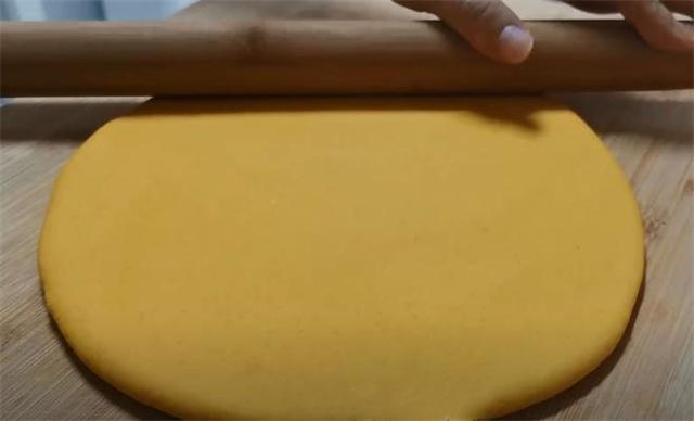 4.揉好后整理成圓形,用搟面杖把它搟開,搟成一厘米厚的薄餅就可以了。