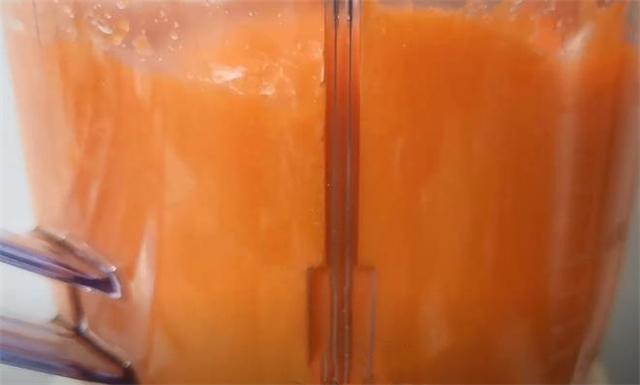 2.切好放入榨汁機中,加入100毫升清水,把它打成胡蘿卜汁。