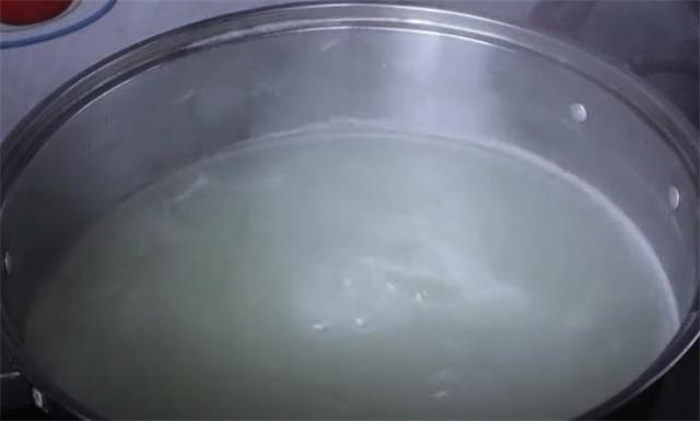 6.接下來燒一大鍋水,水燒開后,把攪好的面糊倒入鍋里面,用筷子攪拌均勻,面湯要稍微細一些,就跟咱們平常煮面條的面湯的稀稠度一樣,順便用漏勺把鍋里的浮沫撈出來,面湯煮開后再煮兩分鐘左右關火,這個面湯咱們一會兒要用到。