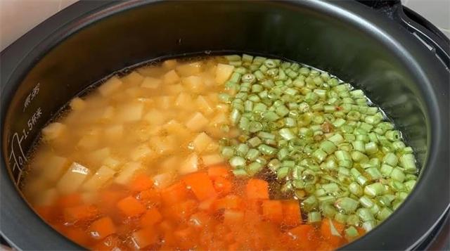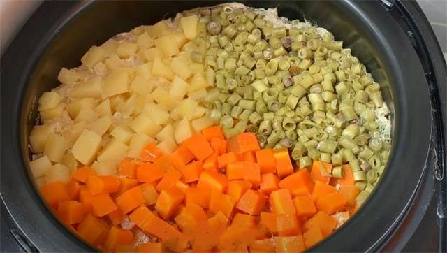 準備食材: 大米、清水、豆角、胡蘿卜、土豆、生抽、素蠔油、香油、蔥花 具體做法: