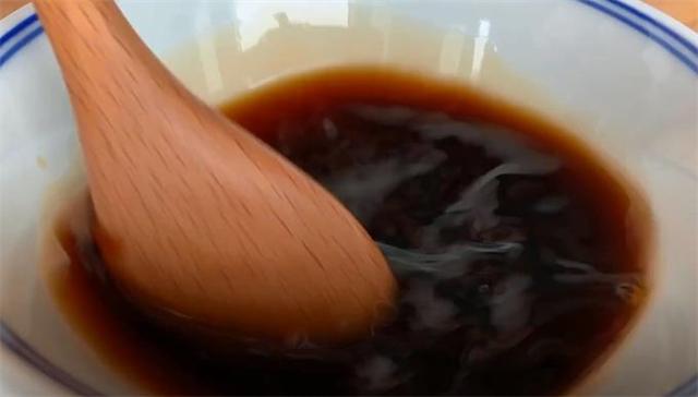 5.接下來調個料汁,在碗里面加入兩勺生抽,一勺素蠔油,一小碗清水,用勺子攪拌均勻備用。
