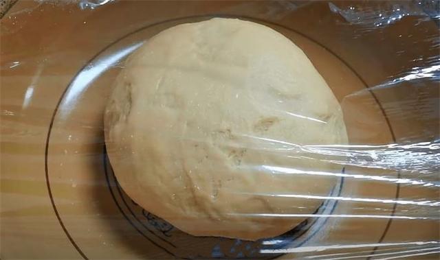 1.碗中加入適量清水,加入3勺白糖,4g酵母粉,400g面粉,邊倒邊攪拌,攪拌成絮狀,再加入10g食用油,然后把它揉成面團放在案板上,這個時候要使勁揉,像洗衣服一樣揉搓,大概5分鐘左右,揉成光滑有彈性就可以了,再次放入碗中,蓋上保鮮膜醒半個小時。