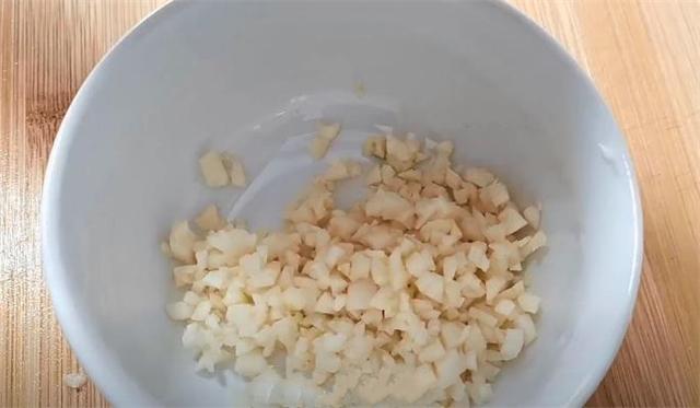 3.準(zhǔn)備幾瓣大蒜切成末,放入碗中備用。