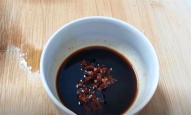 8.下面調(diào)點(diǎn)料汁, 碗中加入3勺生抽,3勺香醋,一勺素蠔油,適量味精,一勺辣椒油,用勺子攪拌均勻。