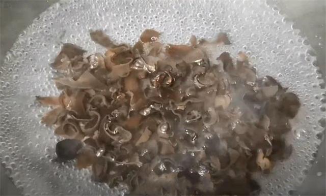 6.然后把木耳倒進(jìn)鍋中,煮5分鐘后撈出。