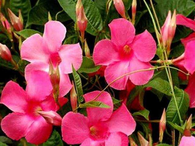 4、飄香藤 飄香藤屬于南方草質藤本植物,它的生長速度很快,而且有很強的開花力,可以做成花墻、花柱,它的顏色主要是粉色、玫紅色、紅色,具有很好的觀賞價值,所以在最近幾年,它非常流行。 可惜,大部分人都買了假貨,買來的都是“紅嬋花”,這兩種植物長得很像,葉子也很像,唯一的區別就是,這兩種植物的葉子都有褶皺,而這兩種植物,卻只有夏天和秋天才有褶皺。