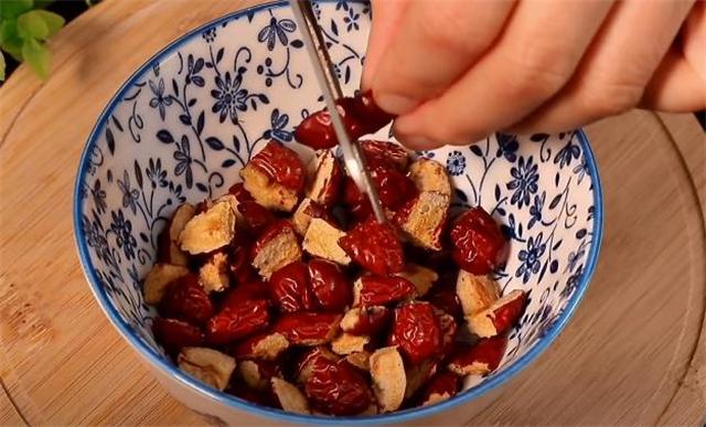 4.接著再準備一點紅棗,把紅棗的核去掉,留下紅棗肉放入碗中備用。