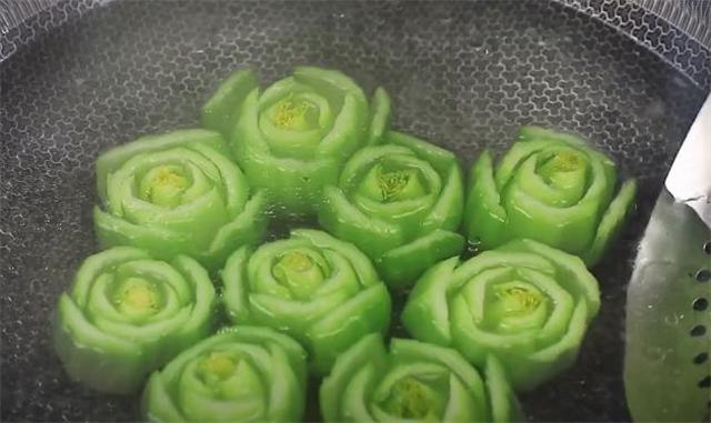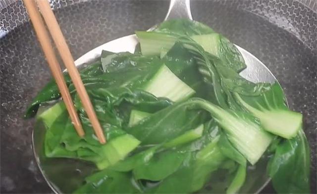 4.鍋里水開之后加少許的食鹽和食用油,然后把上海青的根部下鍋煮熟,加入食鹽和食用油,可以使上海青更加的翠綠鮮亮。