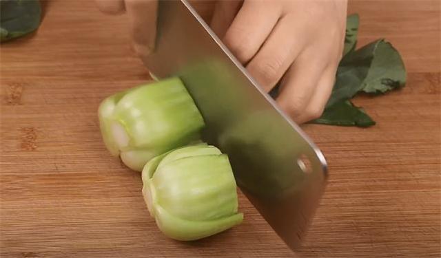 1.先把上海青的根部和葉子給它分開,全部切成這個樣子就可以了。