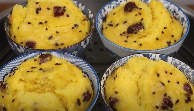 7.全部完成之后給它上鍋蒸熟,然后蓋上鍋蓋,二次醒發十分鐘,時間到了再大火蒸30分鐘左右,蒸熟之后再燜個五分鐘就可以打開了,這樣一道營養美味的橘子發糕就做好了,外表金黃金黃的真的非常漂亮,看起來非常有食欲。