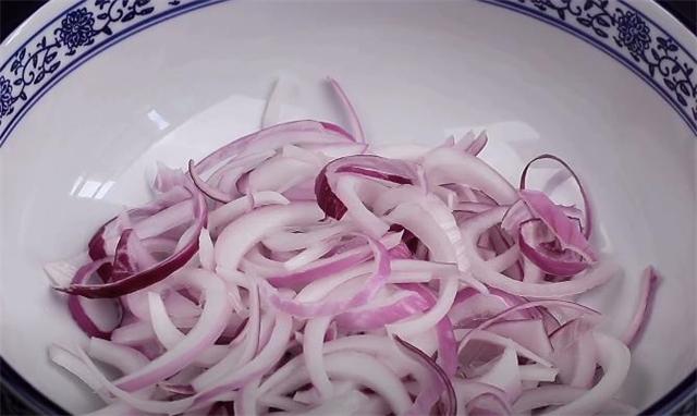 1.先把洋蔥切成洋蔥絲,切好之后裝入盤中備用。