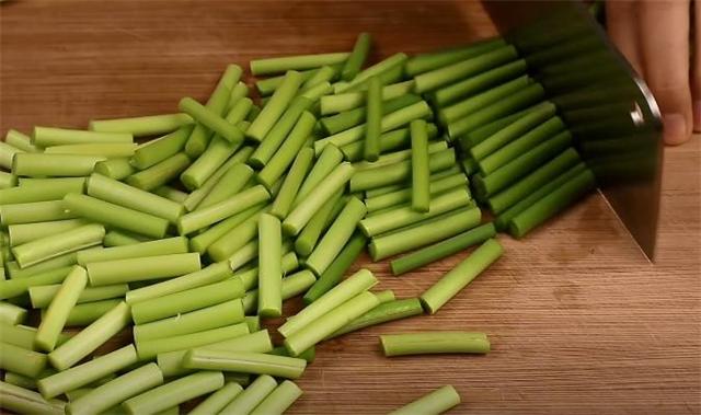 1.先把一斤蒜苔的頭尾給它去掉,然后把蒜苔切成約3厘米長的小段。