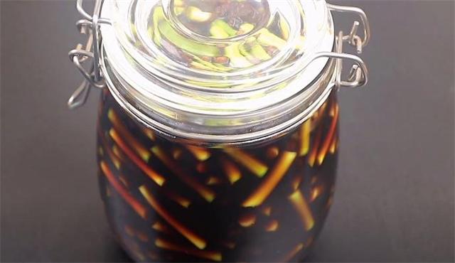 6.然后裝入到一個無水無油的干凈瓶子里面,料汁的量一定要沒過蒜苔,蓋好蓋子第二天就可以吃了,放兩天再吃就更入味,吃起來椒香濃郁,清脆爽口,特別的開胃又下飯。 |