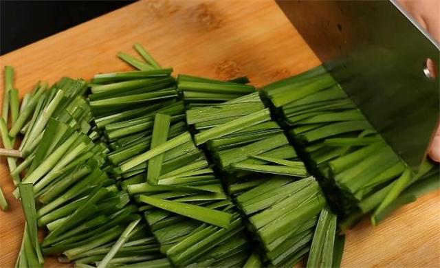 3.一把洗凈的韭菜給它切成小段。