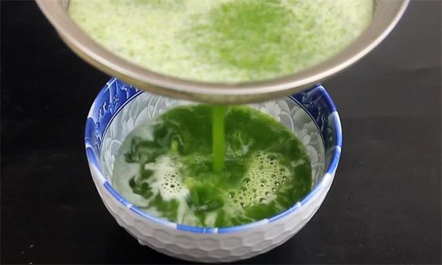 2.然后放入到榨汁機里,加入適量的涼開水,我們把它榨成汁,榨好之后過濾掉殘渣。