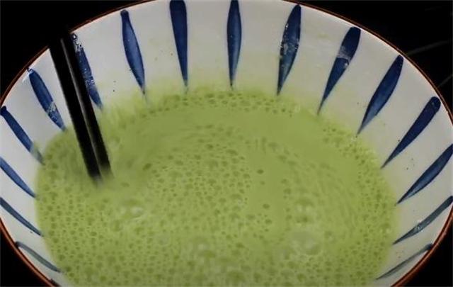 3.用同樣大小的碗再準備一碗豌豆淀粉,黃瓜汁倒入豌豆淀粉里面,用筷子給它攪拌均勻。