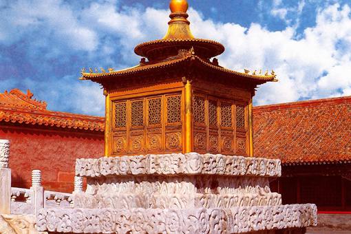 如果問故宮博物院最大的宮殿是哪個,答案一定是三大殿之首的太和殿了。太和殿面闊十一間,進深五間,長64米,寬37米,高26.92米,建筑面積2377平方米,是故宮規模最龐大、等級最高、體量最大的建筑。 如果問故宮最小的宮殿是哪個呢?答案是“江山社稷金殿”。 “江山社稷金殿”位于乾清宮殿階的東側和西側。在漢白玉雕鏤的臺座上,各安放著一個通身鎏金、造型端莊微型宮殿。東面的微型宮殿叫“江山”金殿,西面的微型宮殿叫“社稷”金殿,合起來就叫“江山社稷金殿”。 江山原指山川和山河。社稷原指土神和谷神。經過不斷演繹,江山、社稷都成為國家的代名詞。明朝時期,故宮里并沒有“江山社稷金殿”。到順治十三年(1656年),才在重建乾清門時興建。乾清門是皇帝的寢宮。將“江山社稷金殿”建在乾清宮外,象征皇帝擁有至高無上的權力,并表示皇帝時時刻刻都把江山社稷放在心上。(www.ws46.com)
