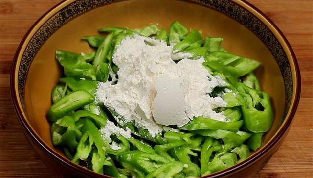 準(zhǔn)備食材: 青椒、鹽、十三香、普通面粉、清水、食用油 具體做法: