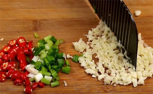 3.下面準(zhǔn)備涼拌黃瓜的輔料,切幾個(gè)小米辣,兩根小蔥切成蔥花,再切點(diǎn)蒜末。