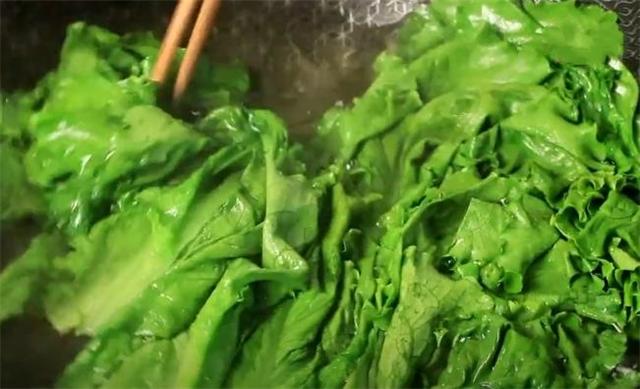 2.鍋里水燒開后加少許的食用油,食用油的作用就是讓生菜焯水后更加的翠綠鮮亮,焯水約一分鐘后出鍋。