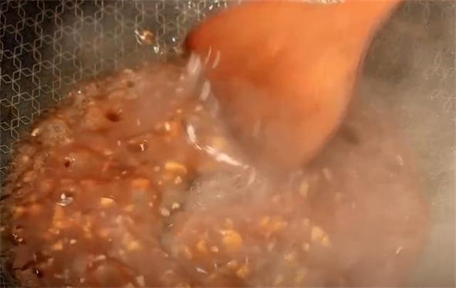 4.起鍋燒油下入蒜末爆香,來少許白糖和食鹽,一勺素蠔油,再來少許的老抽,加入半碗的水淀粉,中小火熬至濃稠后關火。