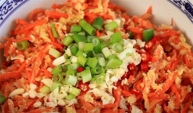 準備食材: 胡蘿卜、鹽、食用油、淀粉、普通面粉、蔥花、大蒜、小米辣、花椒 具體做法: