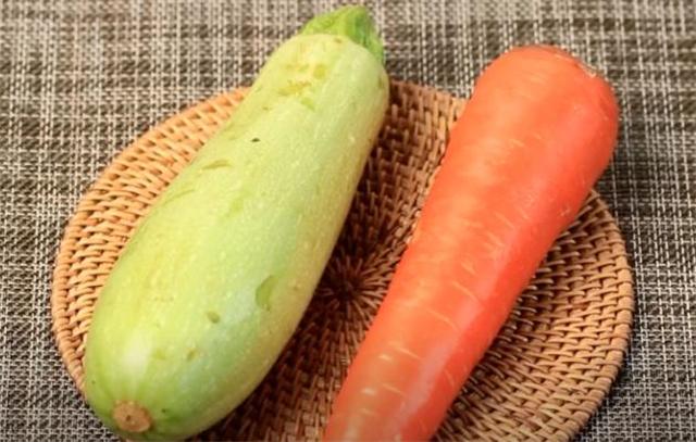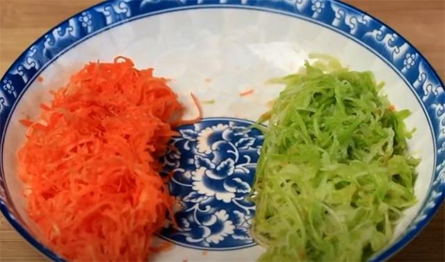1.先把胡蘿卜擦成細絲,把西葫蘆也擦成細絲。