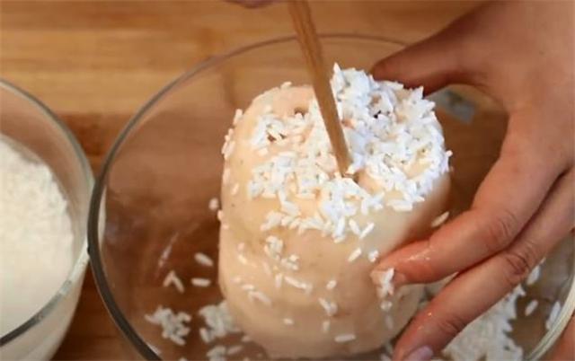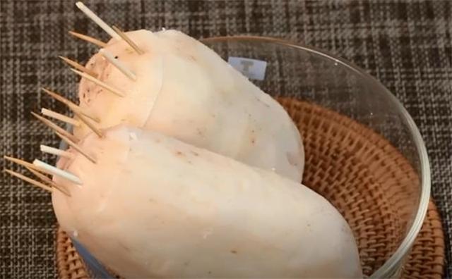 4.再把剛切掉的一塊蓋到上面,用牙簽插住。