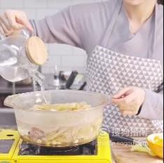放入姜片,花膠,螺片,加入適量清水,水開后飛水去腥。