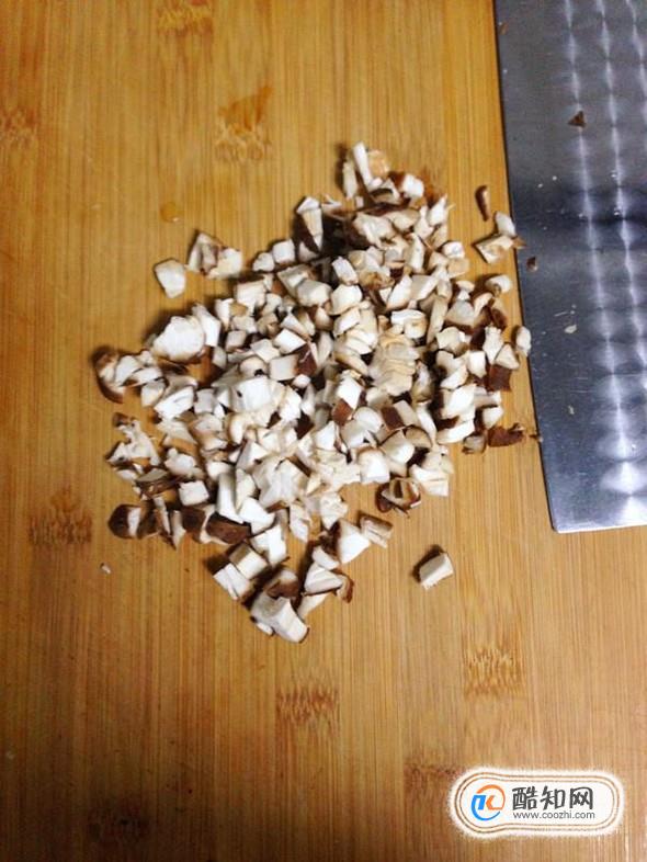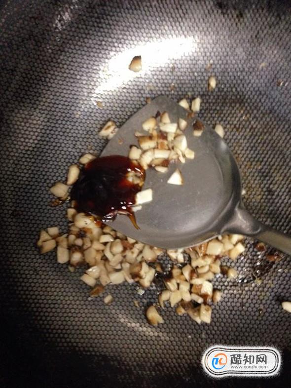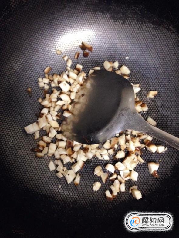 油鍋燒熱,把香菇丁放入大火炒出香味。