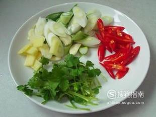 然后將土豆洗凈切塊備用,用水泡一下,去除淀粉,然后把土豆用油炸一下,然后把蔥,姜,香菜洗凈切好備用。