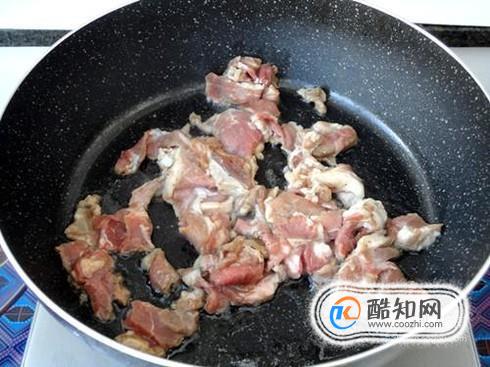 鍋中加油,待油八分熱時加入我們腌制好的羊肉塊,爆炒,