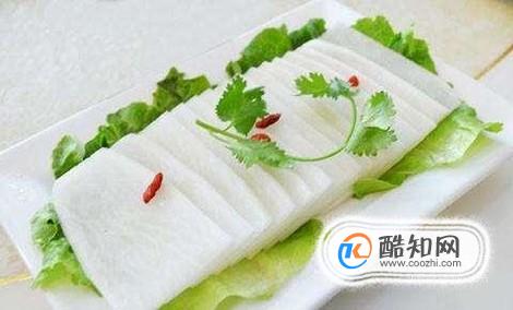 白蘿卜去皮,洗凈,切成片,裝盤備用