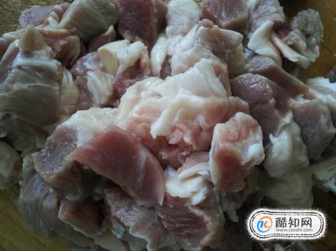 羊肉洗凈,切成小塊兒,向其中加入少許鹽和料酒,攪拌均勻,腌制15分鐘