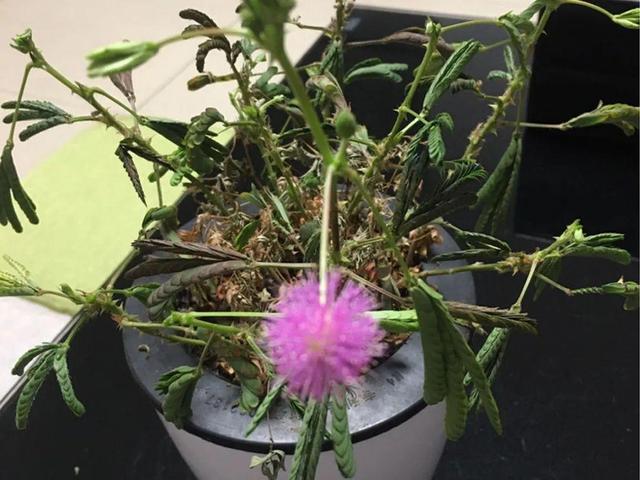 圖:含羞草缺水后的表現 澆水技巧: 1、含羞草盆栽最好1天澆一次,花盆比較大的,可以2-3天澆一次,用懶人盆養,要及時查看里面的水夠不夠。 2、含羞草比較喜光,澆完水后放到陽光充足的位置,曬一曬更健康。 3、發現有缺水癥狀的,要趕緊往盆托里注水,或在水盆里浸盆20分鐘,直到枝條恢復,恢復不了的就剪掉。