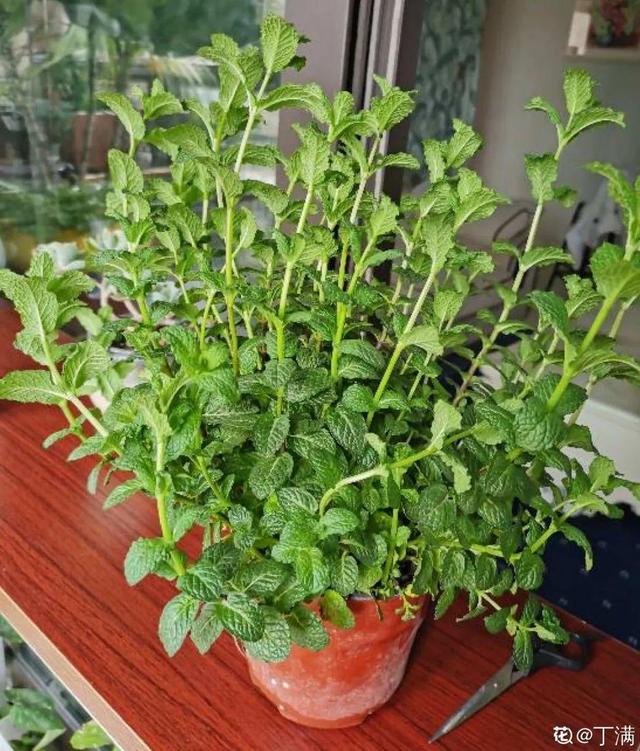 薄荷喜歡大水大太陽,頻繁澆水的同時也要曬太陽,如果遇到枝條太長(水多缺光)、老葉發黑枯黃(水多悶黃)、可以把枝條剪掉,隨便剪,根部還會冒新芽,剪掉的枝條可以重新扦插或水培。