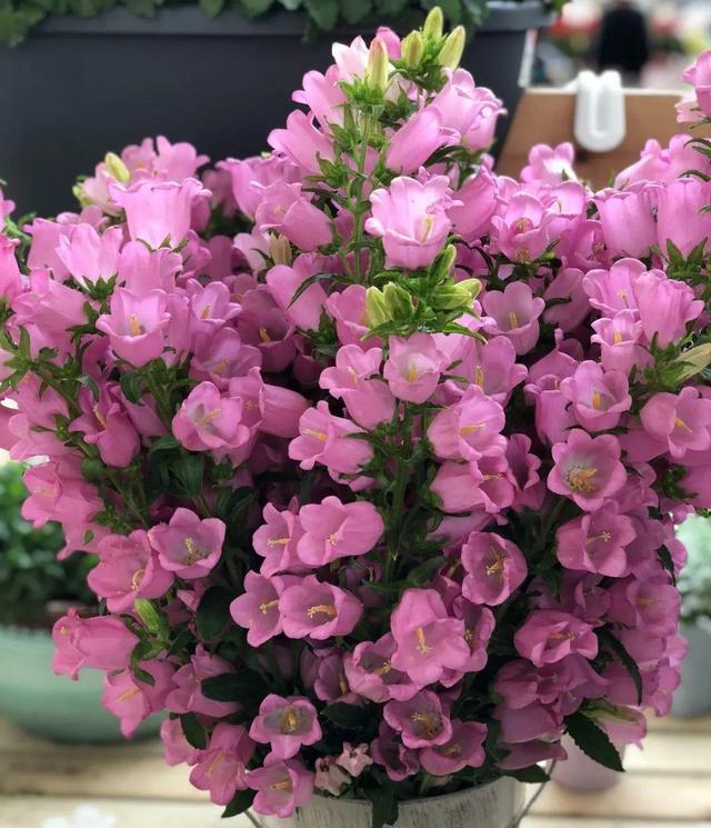 風鈴草 風鈴草最近兩年很火,花市里有很多,這種1-2年生小草花,剛買到家一定要記得澆水,小盆子要1天一澆,不然很快就枯萎,花苞都癟了。