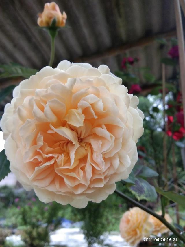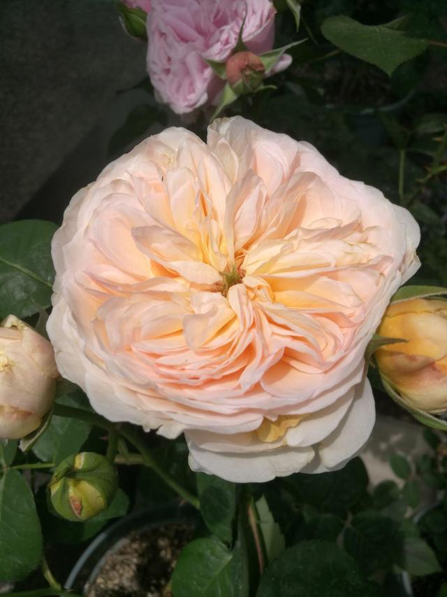 瑪格麗特王妃的花呈現(xiàn)杏仁色,花瓣也變得特別多,能夠達到120瓣。不過它的花瓣不像自由精神那樣外放,而是像傳統(tǒng)月季那樣適當(dāng)?shù)貎?nèi)斂,在中央以一種類似螺旋的方式,形成一個特殊繁復(fù)的紋路。