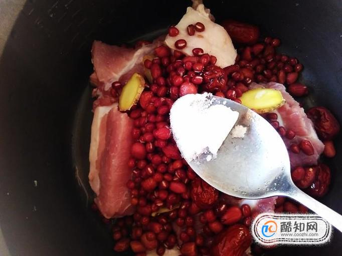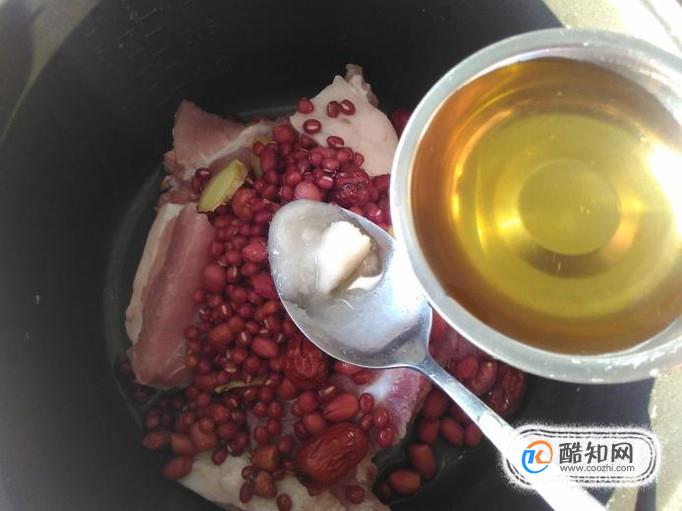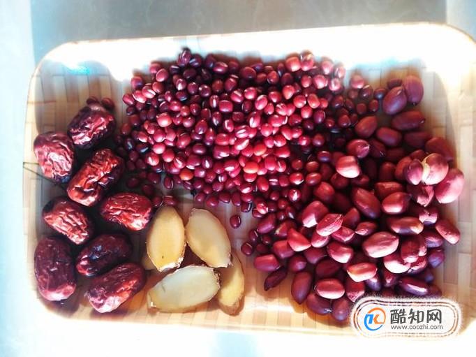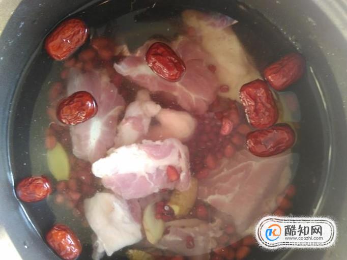 肉骨400克,紅棗30克,紅豆50克,紅皮花生50克,姜片、2勺料酒。