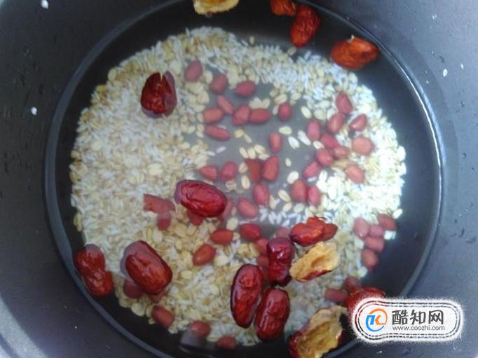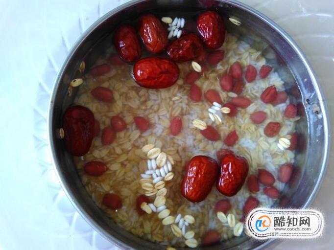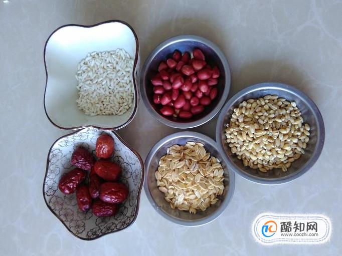 糯米、紅棗、紅皮花生、燕麥、糯薏米準備好。
