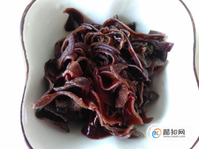 把食材倒到過濾器里放置盤中清洗干凈,木耳清洗干凈切成小絲。