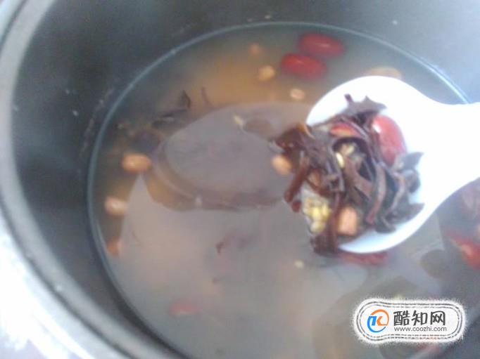 木耳30克,紅皮花生30克,紅棗20克,燕麥30克,糯薏米30克,糯米30克,土紅糖適量。