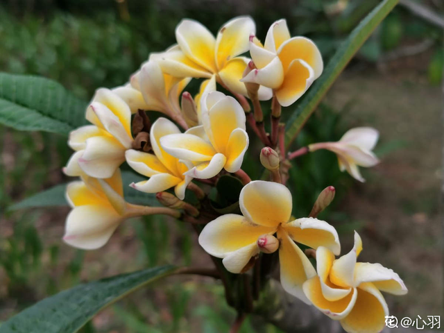 七、雞蛋花 雞蛋花的花瓣外面是蛋清一樣的白色,里面是蛋黃一樣的花色,盛開時好像一個攤開的煎雞蛋。雞蛋花的花期也很長,每年的5~10月都可以開花,因為雞蛋花喜歡充足的光照,枝葉比較厚實,對強光的抵抗力想比其他花卉更強,所以8月開得會更燦爛,而且一般會一團一團的開放,非常亮眼。