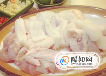 新鮮雞肉洗凈,砍成塊,洗凈,裝盤備用。