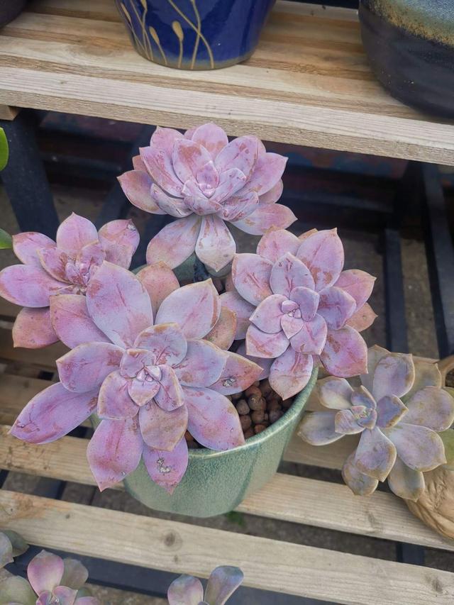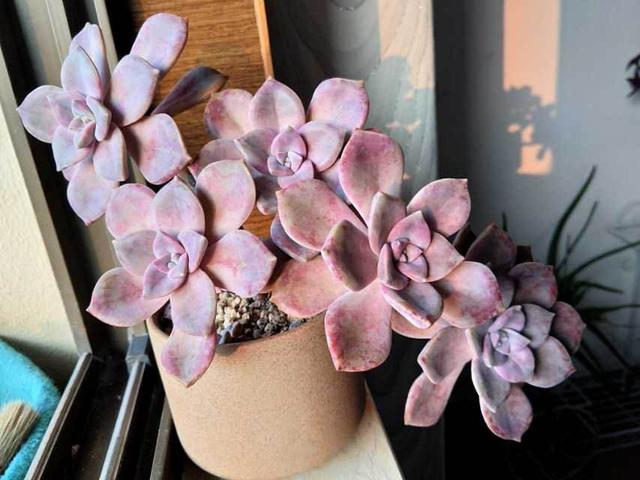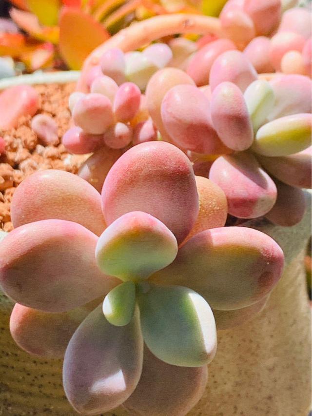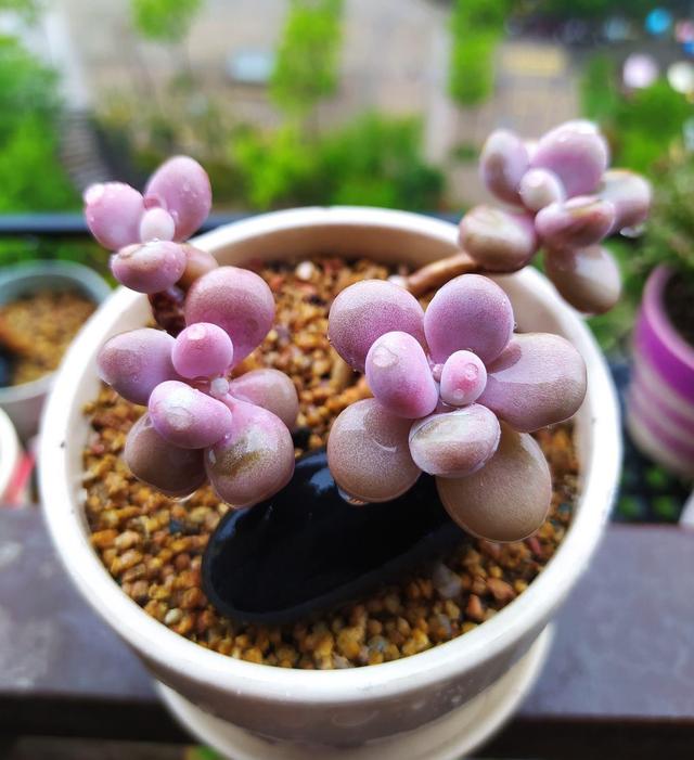 紫樂和桃蛋一樣,是夏季休眠大部隊里的一員,它的葉片本身就帶紫色,趁著秋天把紫樂端出去曬太陽,一曬就變美,我都看心動了~紫樂長得特別快,少給水,適當的施一點肥料,爆盆不是不可能。